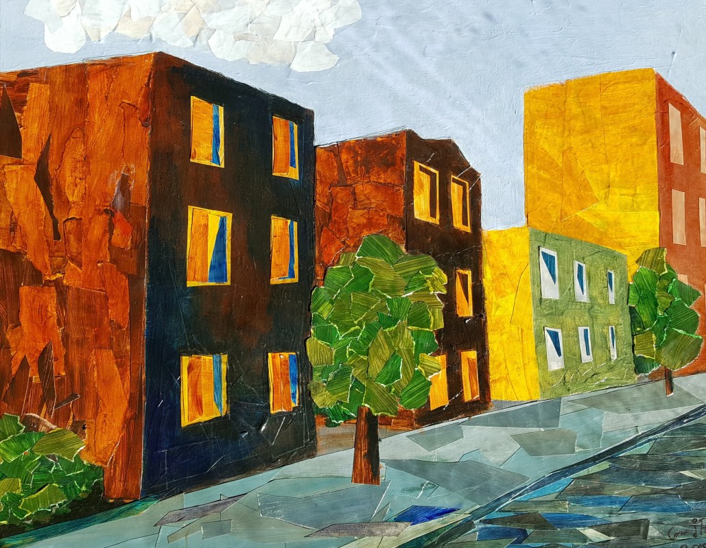 I’ve been trying something totally new lately–I’ve been collaging with paper and acrylics to create some mixed media pieces that I’m really excited about. I started working on this painting in the beginning of February and I had a specific goal in mind…but the painting had other plans, and I’ve learned if I want to create anything successful, I have to let it do what it wants, not what I want.