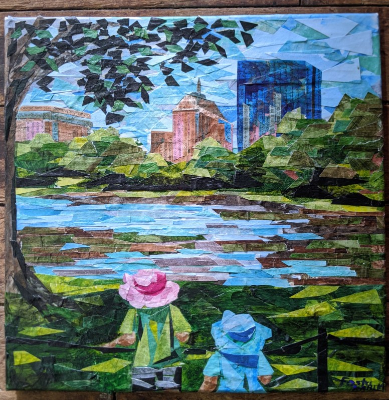I also joined the Cambridge Artist Association. They have two gallery spaces and have more shows overall than at Brickbottom. They have a couple of member shows a year (that every member can participate in) and also have frequent juried exhibitions (meaning someone looks at the submissions and chooses what they want in the show, rather than everyone being automatically included). They also have a lot of different types of events. For me, the most helpful have been a collaging class I took there which actually gave me a lot of useful tools and techniques to apply to my own work, and a group critique session they have periodically called Feedback Forum. Membership is $85 annually, and the various other shows and opportunities tend to have higher fees than at Brickbottom, but there are also a lot more opportunities available.