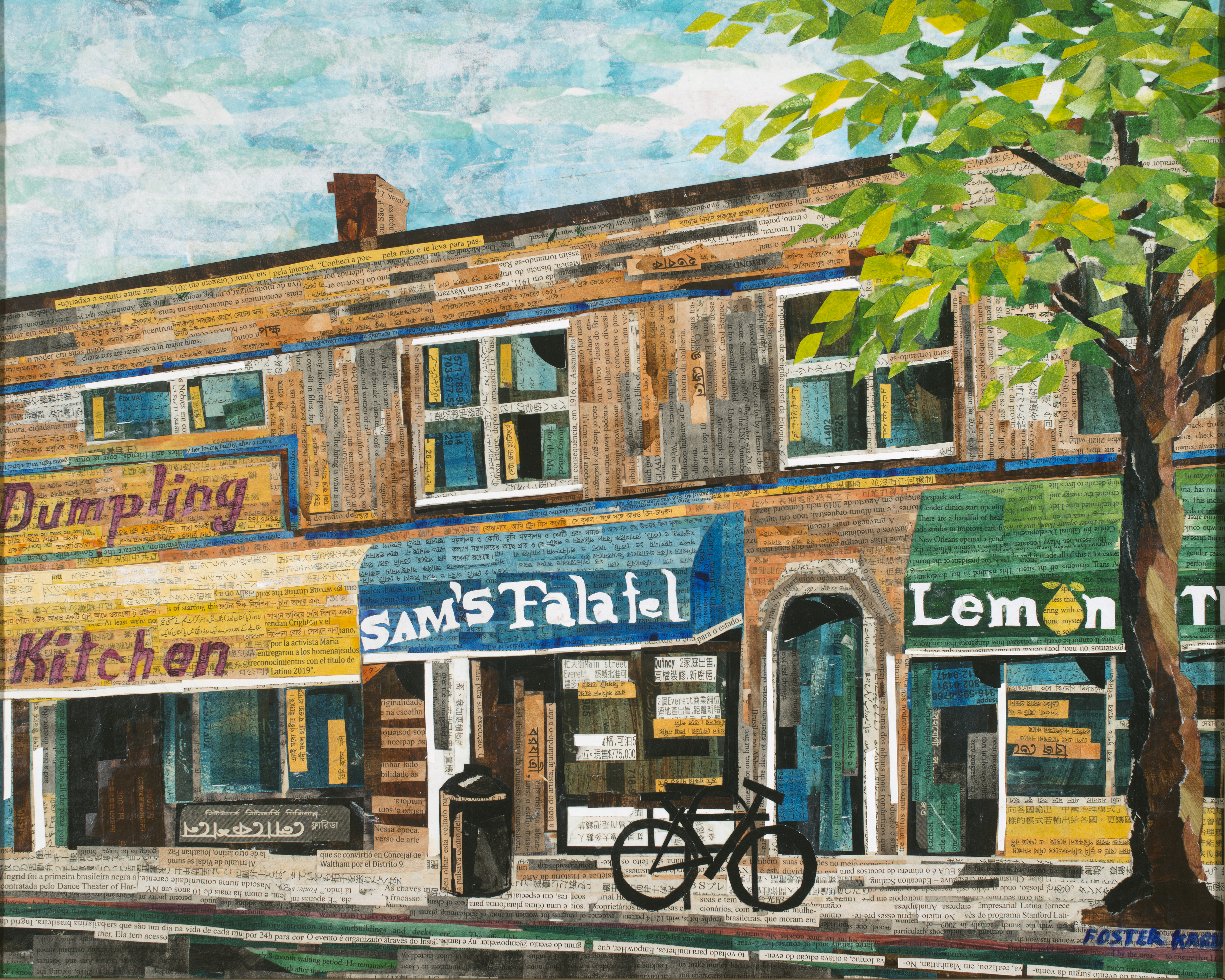 Storefronts Series 2 March 14, 2022August 21, 2025 Written by cjfk2013 SOLD “Vinal Bakery”. Newspaper collage, 12 by 12 inches “Pikliz”. Newspaper collage, 16 by 20 inches SOLD “Leone’s”. Newspaper collage, 16 by 20 inches SOLD “Lyndells”. Newspaper collage, 24 by 36 inches. Not for Sale– “Chinatown Gate”. Newspaper collage, 16 by 20 inches. “Market Basket”. Newspaper collage, 24 by 36 inches “Oasis”. Newspaper collage, 24 by 36 inches “Foodland”. Newspaper collage, 16 by 20 inches “Ball Square Sunset”. Newspaper collage. 16 by 20 inches. “Barra”. Newspaper collage. 10 by 10 inches. “Raymond Ave Sunset”. Newspaper Collage. 11 by 18 inches “Sidamo”. Newspaper collage. 10 by 10 inches SOLD “Teele Square”. Newspaper collage, 36 by 24 inches. SOLD “Vinal Bakery”. Newspaper collage. 12 by 12 inches. SOLD “Sam’s Falafel”. Newspaper collage. 16 by 20 inches. SOLD “Halal Fried Chicken”, 20 by 24 inches, newspaper collage on canvas. Related