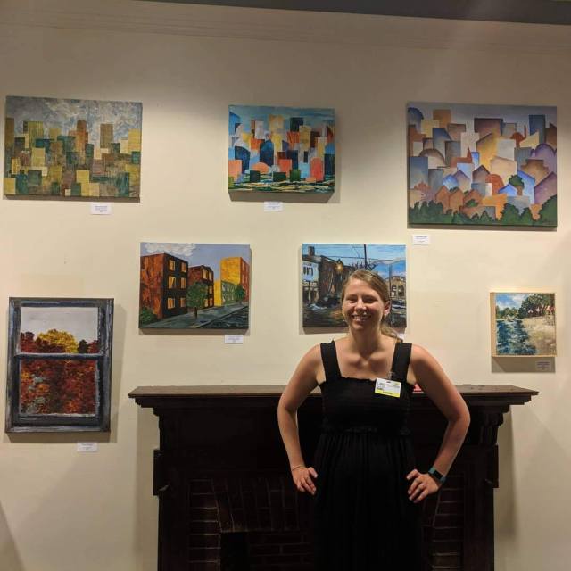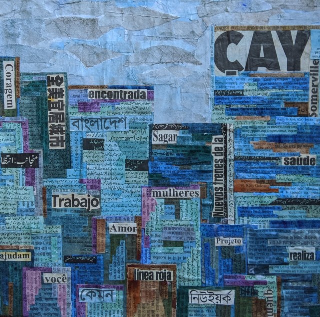 Newspaper collage landscapes in Somerville, Massachusetts